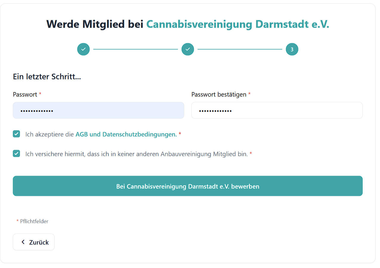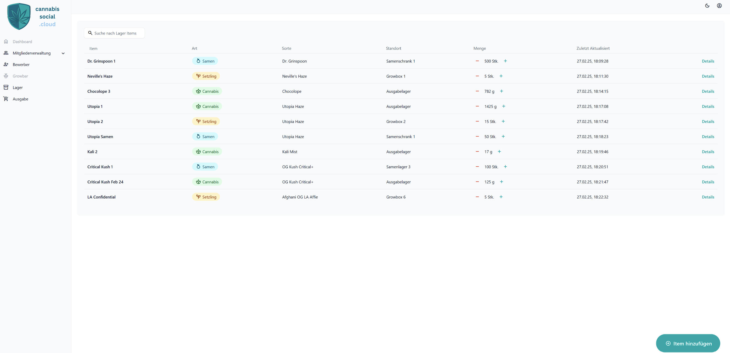Digitale Aufnahme neuer Mitglieder (inkl. Selbstauskunft, ID-Prüfung) + automatische Dokumentation aller Abgaben gemäß KCanG.